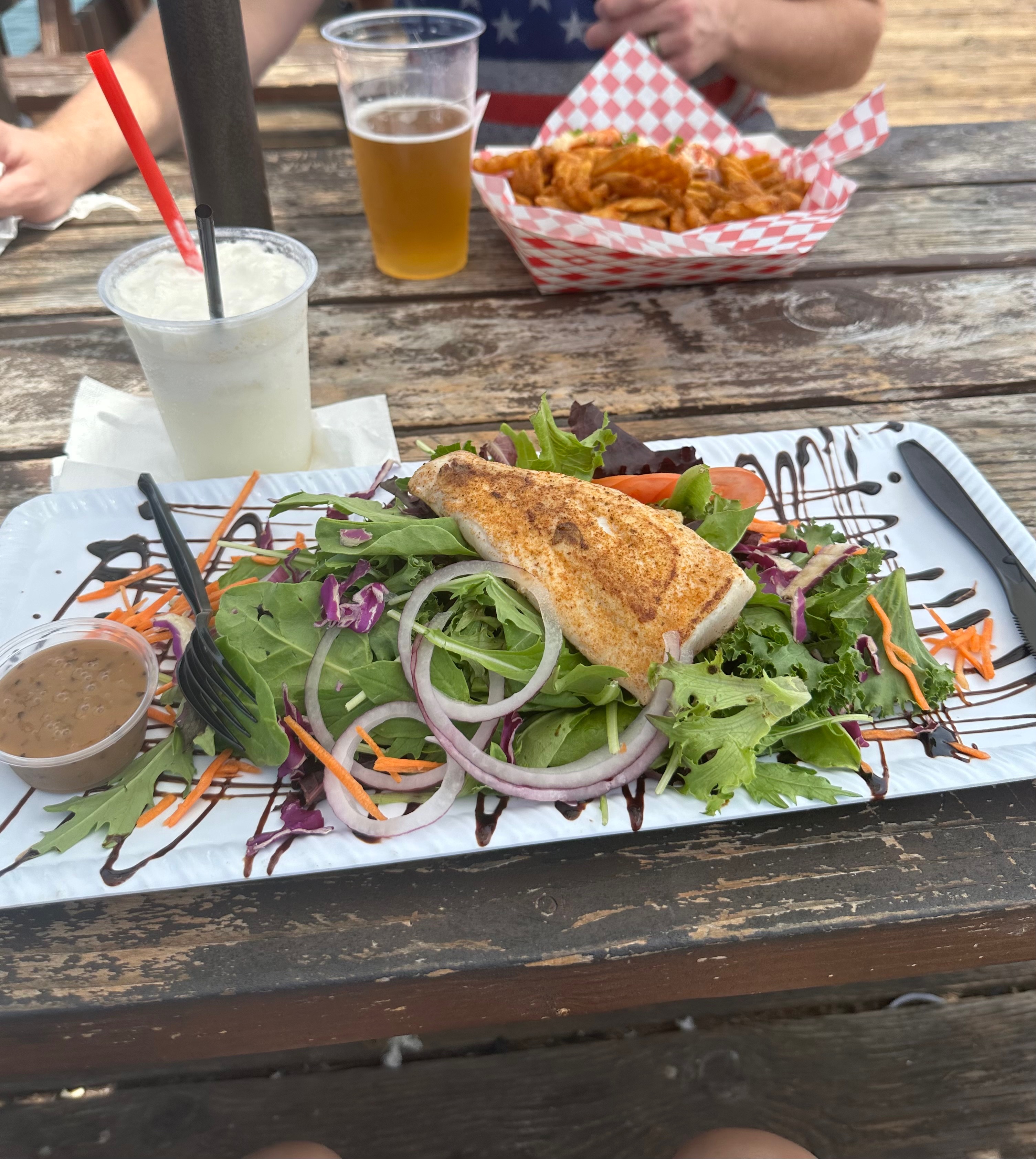 Patrons appreciate the friendly service, often highlighting specific staff members such as Trish for her attentiveness. The casual vibe encourages relaxation after a stroll on the nearby pier, where many find themselves enjoying both the scenery and the food.